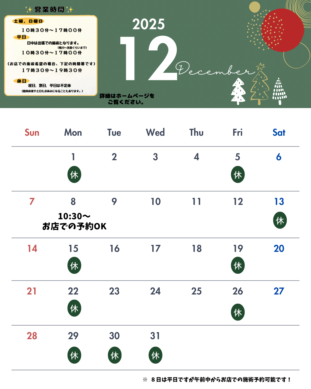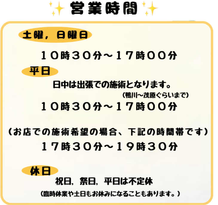 都合により臨時休業とさせていただく場合もありますのでお問い合わせください。